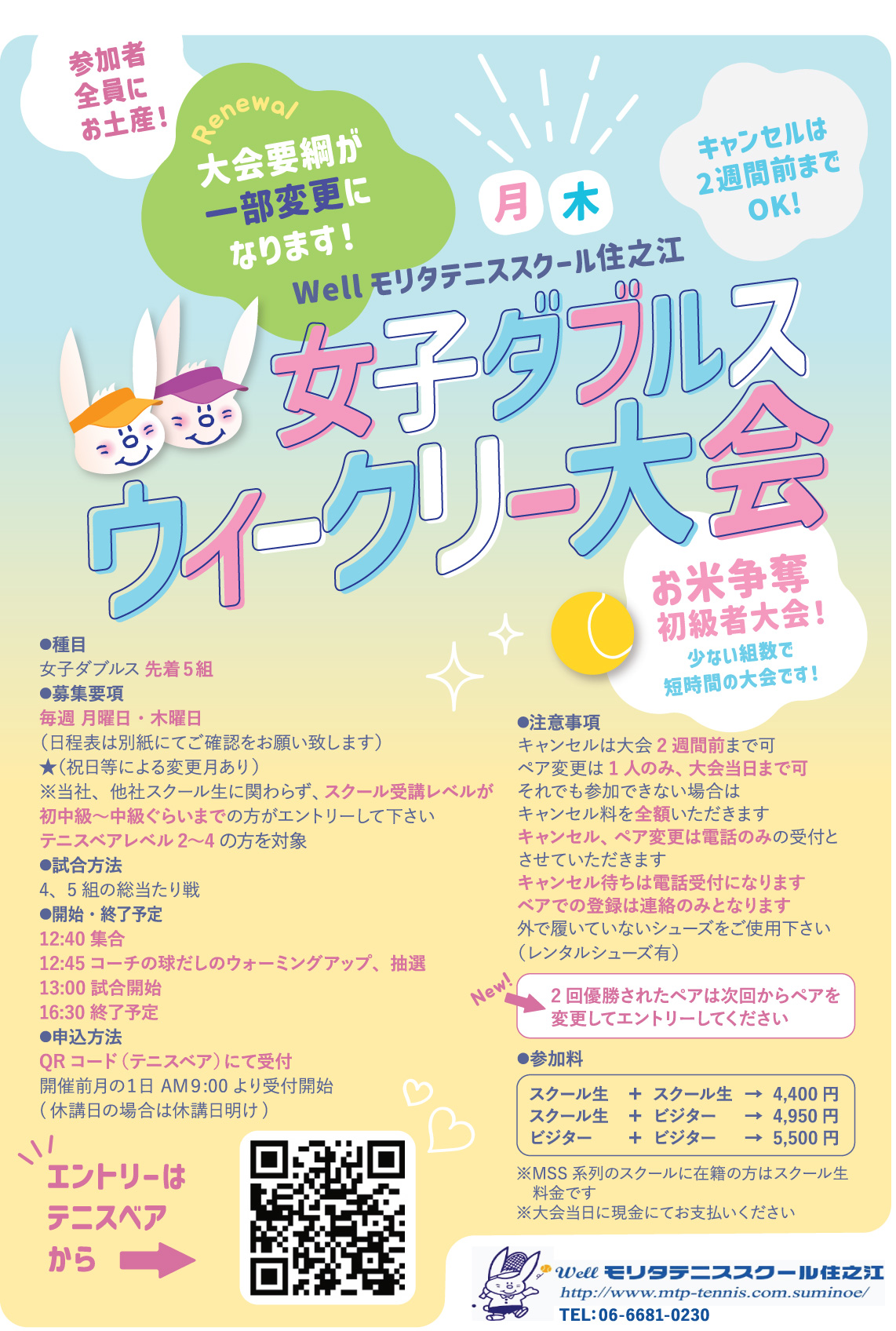 令和7年5月からNEW!女子ダブルスウィークリー大会募集中!詳細はこちらから…
